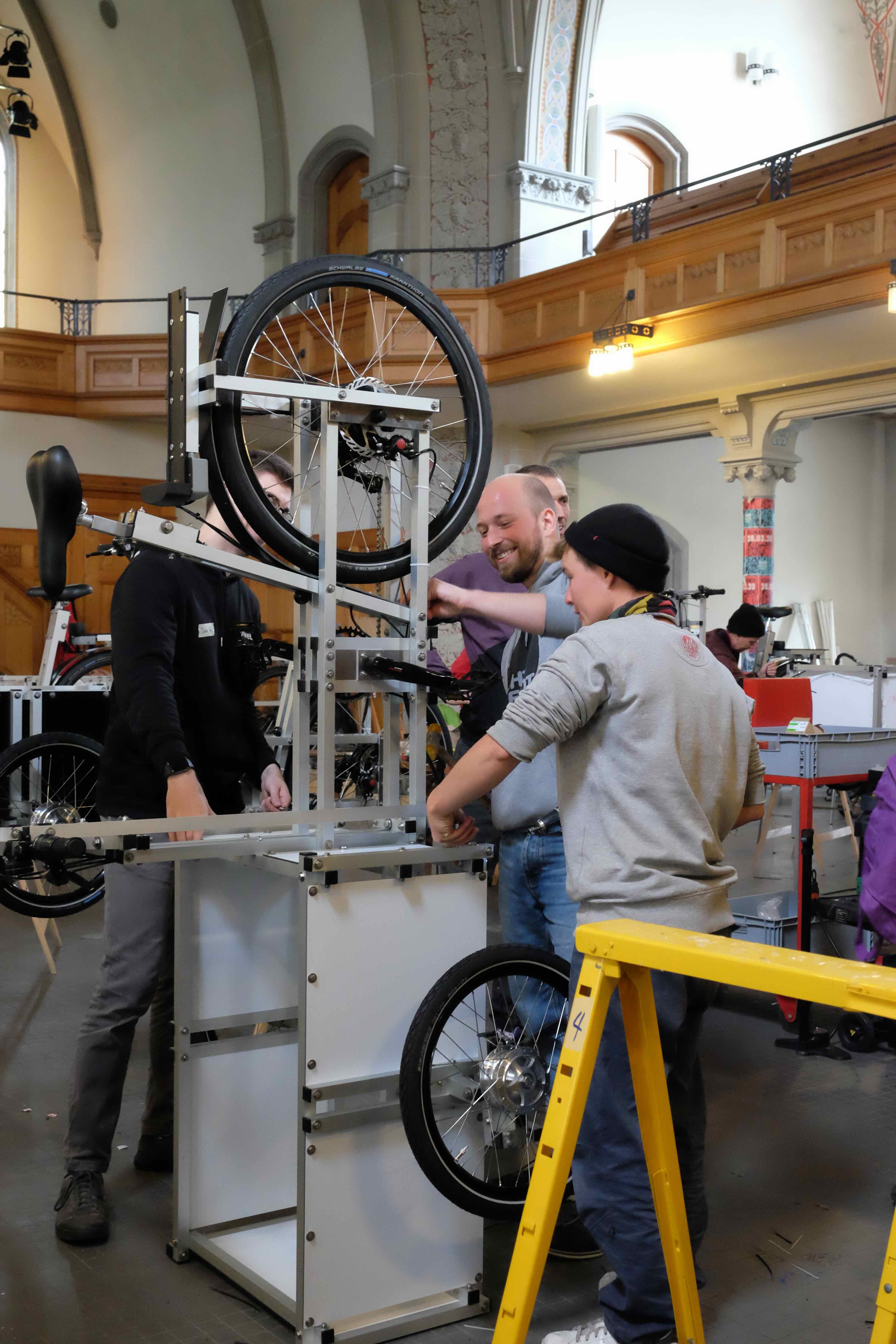 Der Workshop, welcher vom Verein Vélorution organisiert wurde, war in jeder Hinsicht ein Erfolg. Dank der professionellen Anleitung durch drei Vertreter des Herstellers XYZ Cargo konnten sich auch Menschen ohne jegliche Vorkenntnisse sofort aktiv am Bau beteiligen.