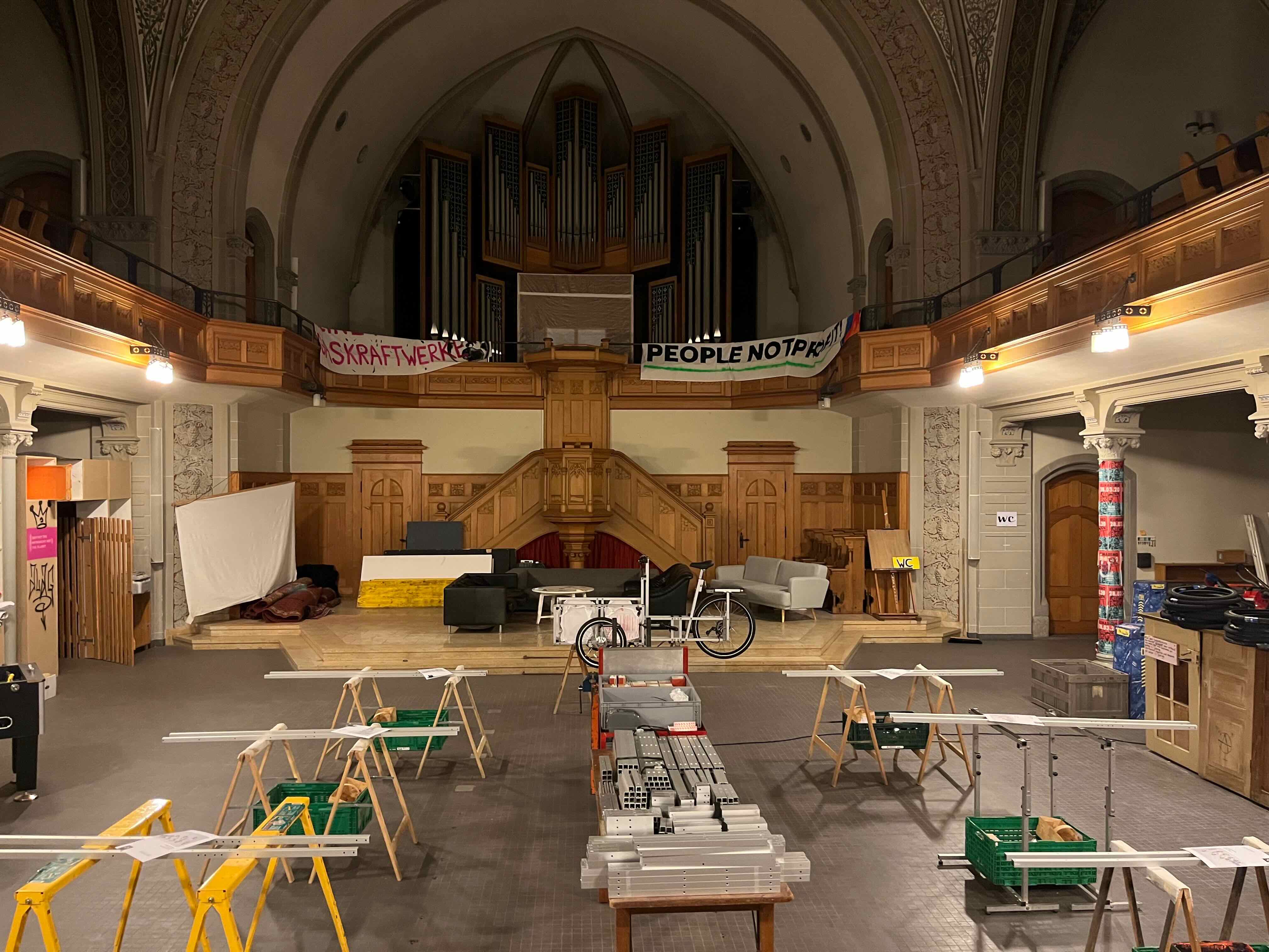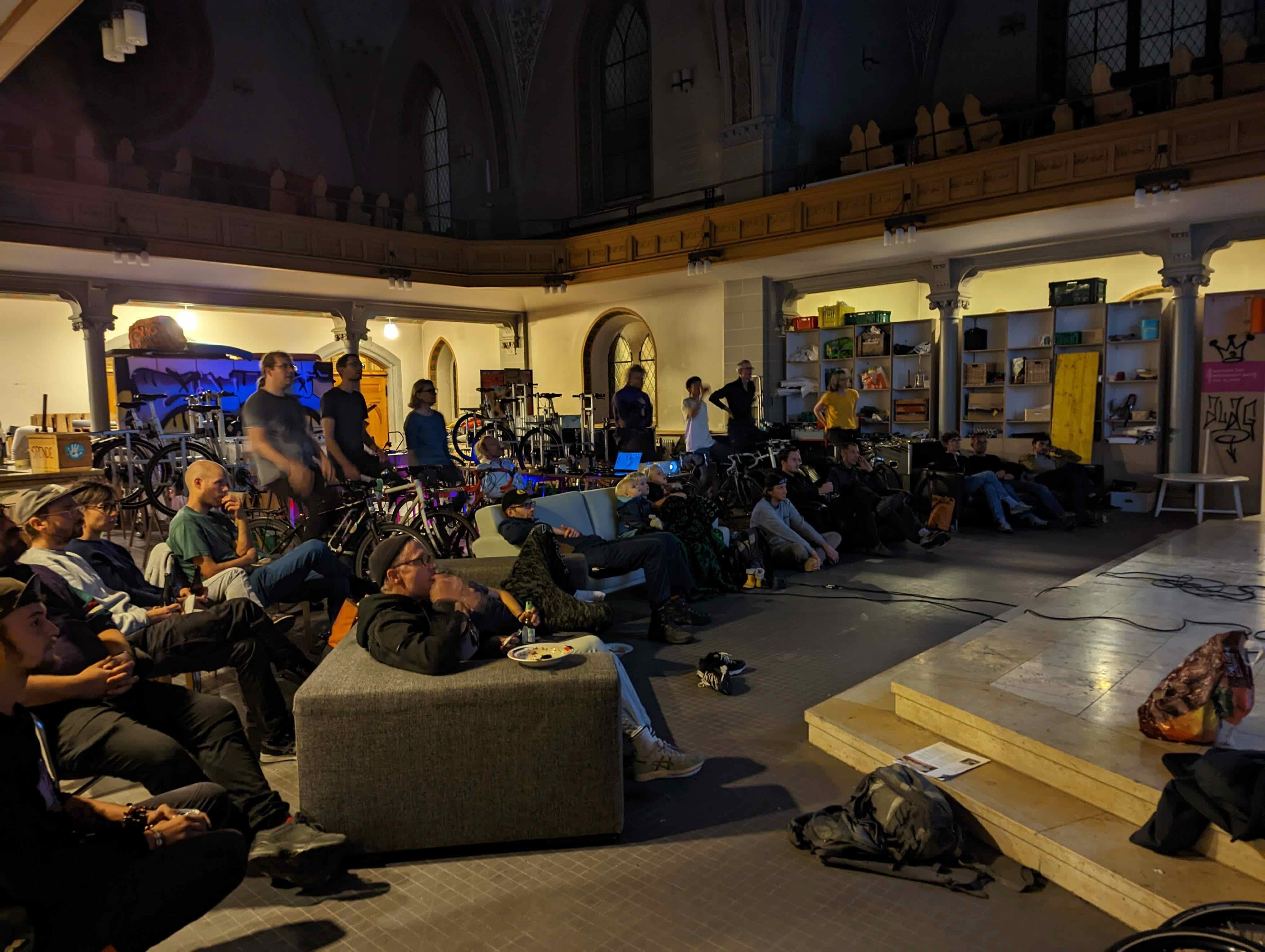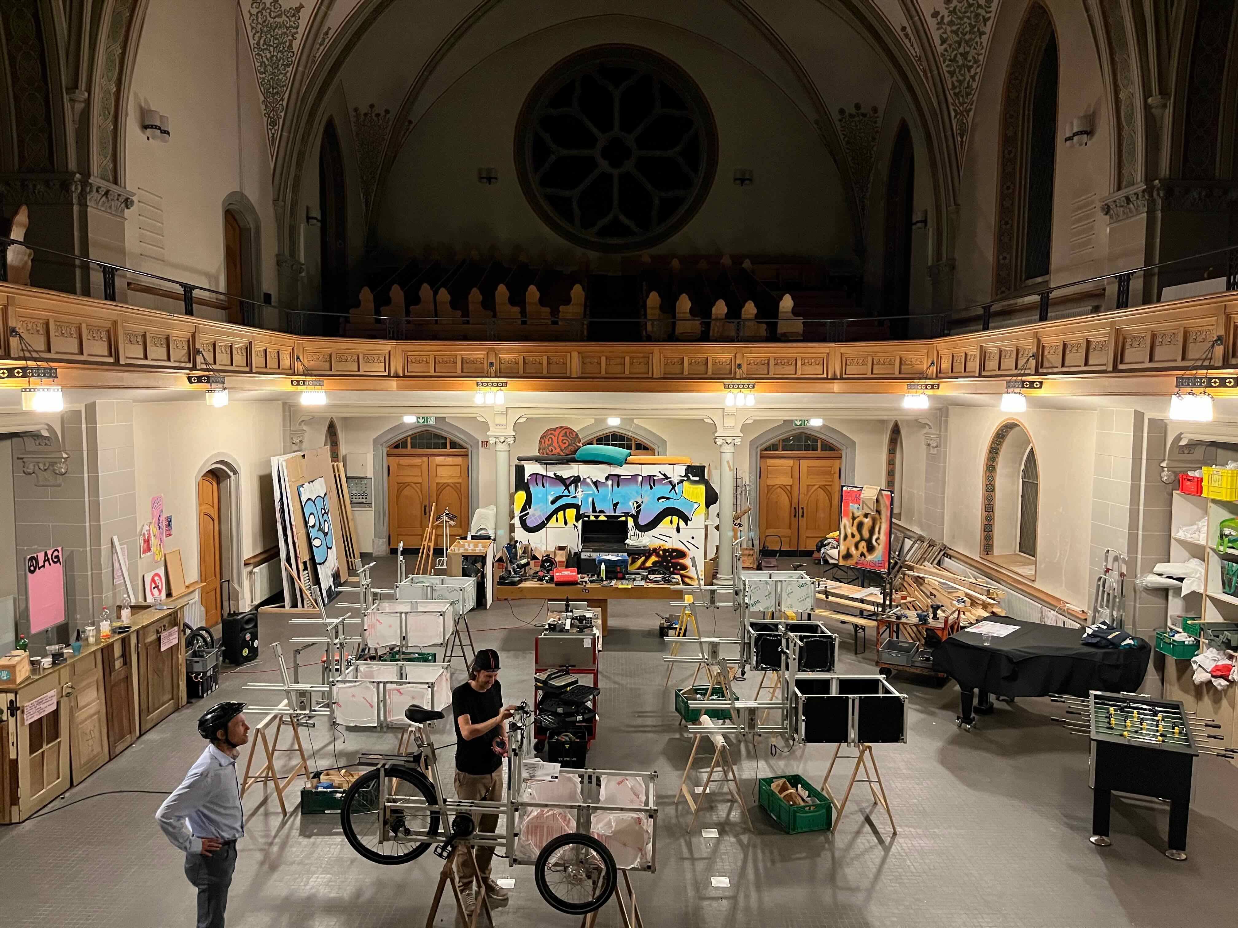 Vom 23.-25. September 2022 bot sich in der ehemaligen Kirche Wipkingen ein ungewohntes Bild: Während drei Tagen haben im Kirchenschiff rund 50 Menschen gemeinsam sechs E-Cargo-Trikes zusammengebaut. Ziel dieses Workshops war es, Wissen zum Velobau zu vermitteln, das Teilen von Gemeinschaftsgütern zu fördern und die Wende hin zu einer klimaschonenden Mobilität voranzutreiben. Die sechs gebauten Cargobikes bilden nun den Grundstock für das neu gegründete Lastenradkollektiv, welches das unkommerzielle Teilen von Lastenrädern ermöglicht und den Wissensaustausch rund um den Transport von schweren Lasten mit Fahrrädern fördert.