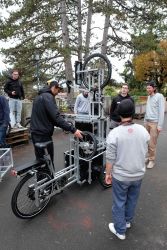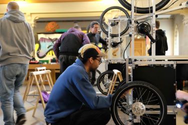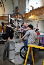 Abgerundet wurde der Workshop von einem abwechslungsreichen Rahmenprogramm bestehend aus VéloKino, Cargobike-Parcours und gemeinsamen Mahlzeiten. Beim VéloKino mussten die Teilnehmenden den Strom für die Filmvorführung durch Pedalieren auf Velos selber generieren und konnten so ein Gefühl für die Kostbarkeit von Energie entwickeln. Beim Cargobike-Parcours konnten auf spassgeladene Weise die fertiggestellten Lastenräder auf ihre Tauglichkeit geprüft und erste Erfahrungen im Lenken von dreirädrigen Cargobikes gesammelt werden. Die gemeinsamen Mahlzeiten boten Gelegenheit zum Austausch und zum Entwickeln von Visionen fürs Lastenradkollektiv.