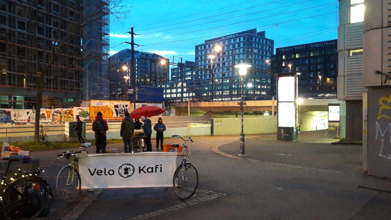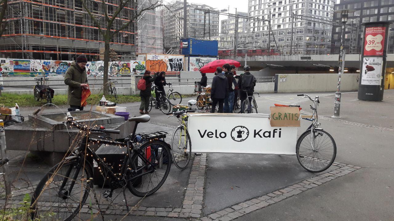 Mit dem Spruch «Gratis Kafi für Velofahrer*Innen» versuchten wir, die Vorbeiradelnden für einen kurzen Stopp zu motivieren. Ganz dem Limmatstadt-Vibe entsprechend, wurde jedoch «kei Ziit, muess go schaffe!» zu einer mantraartig anmutenden Entschuldigung, nicht vom Sattel steigen zu müssen und den Kaffee bei einem kurzen Gespräch zu geniessen.