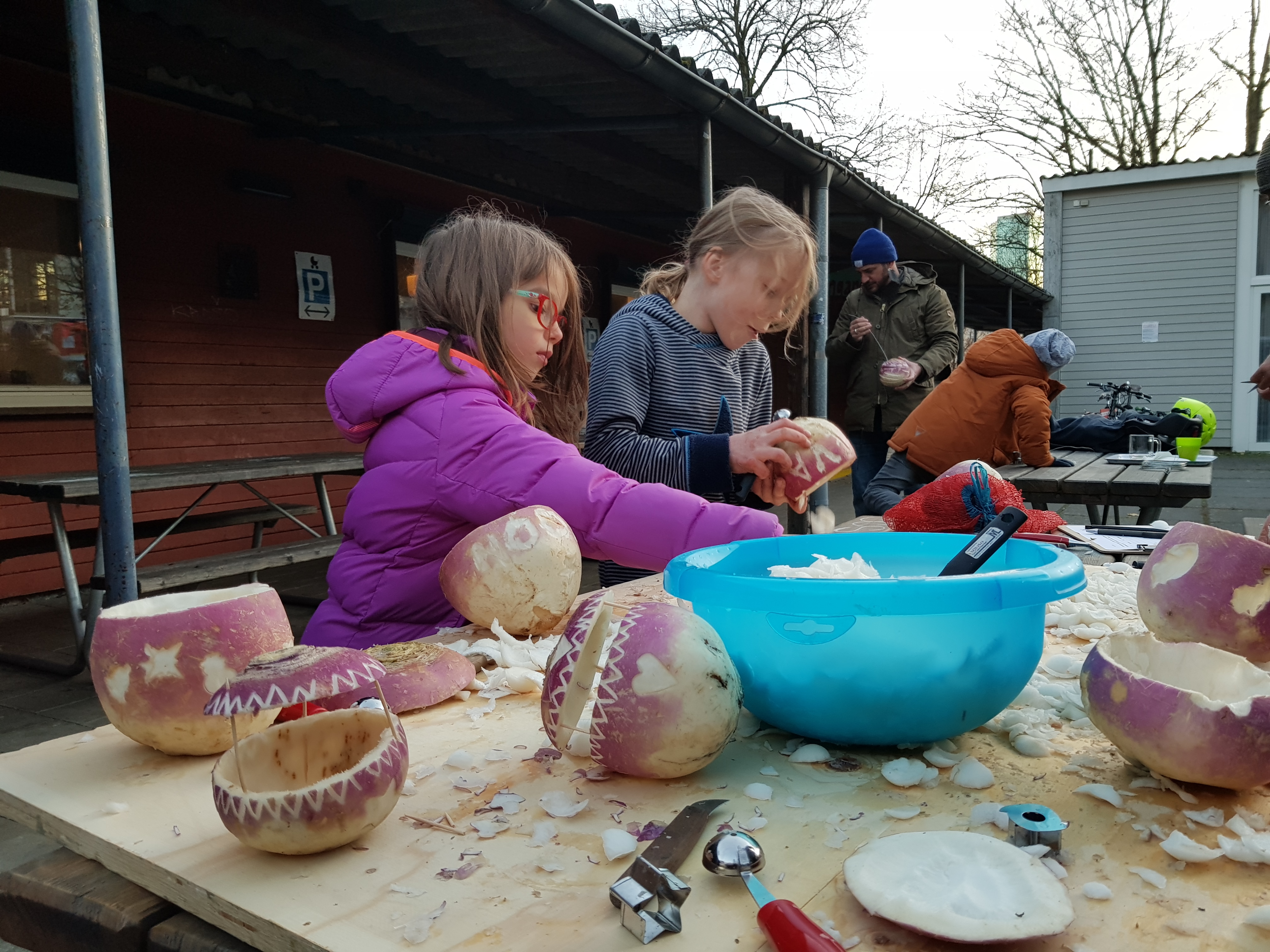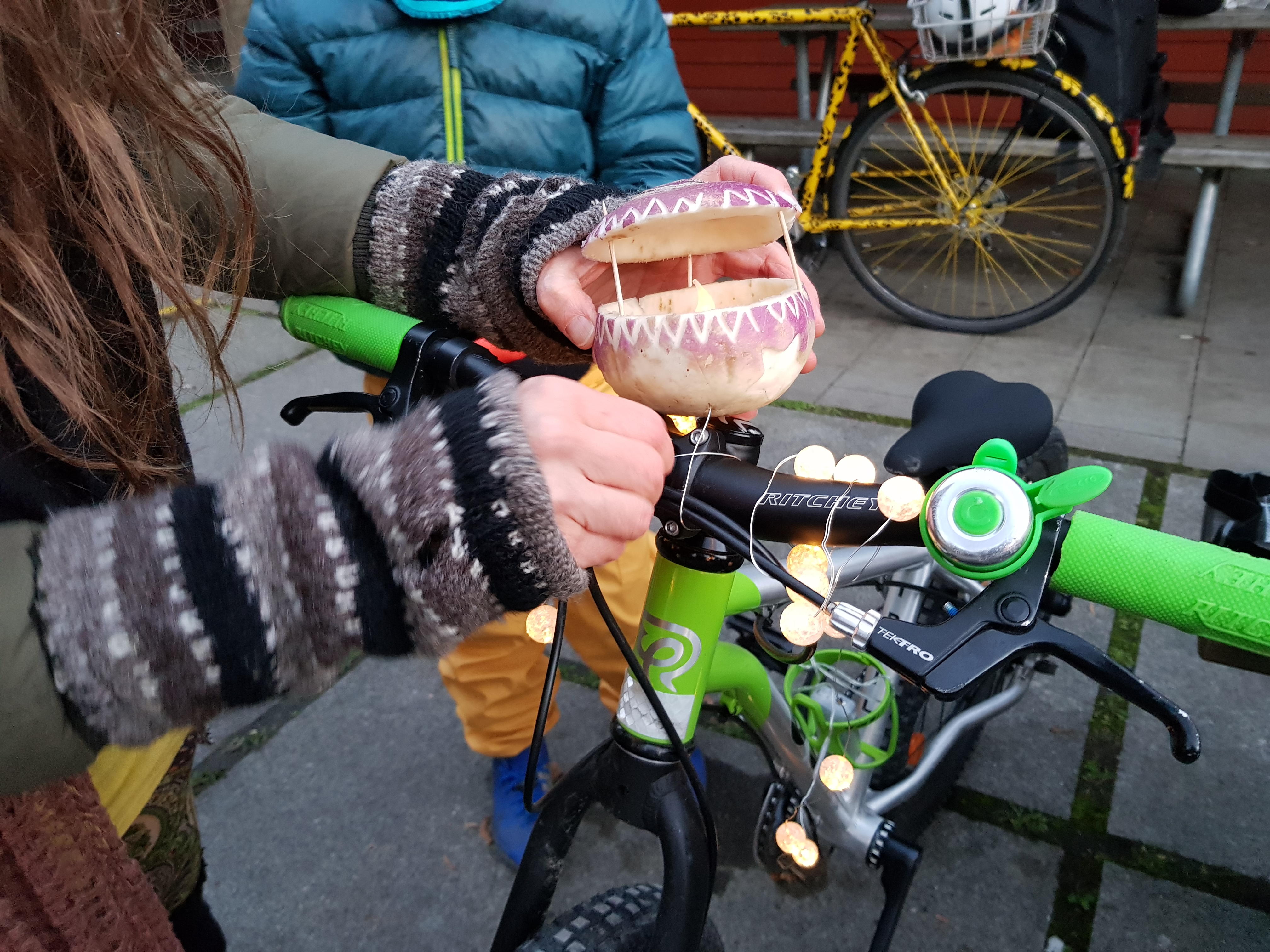 «Papa, ich fühle mich wie am Heiligabend,» sagt das Kind auf seinem mit Räbeliechtli geschmückten Velo, als es langsam dunkel wird und sich die Masse von Kindern und Eltern zur Abfahrt vorbereitet. Sie befinden sich im GZ Wipkingen. Schon den ganzen Nachmittag haben hier Kleine wie Grosse Räbeliechtli geschnitzt.