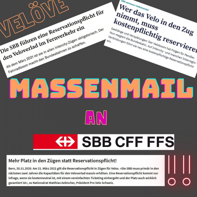 Medienspiegel zur Aktion kritisches MASSenmail gegen Reservationspflicht bei den SBB und zum Velotransport bei den SBB.