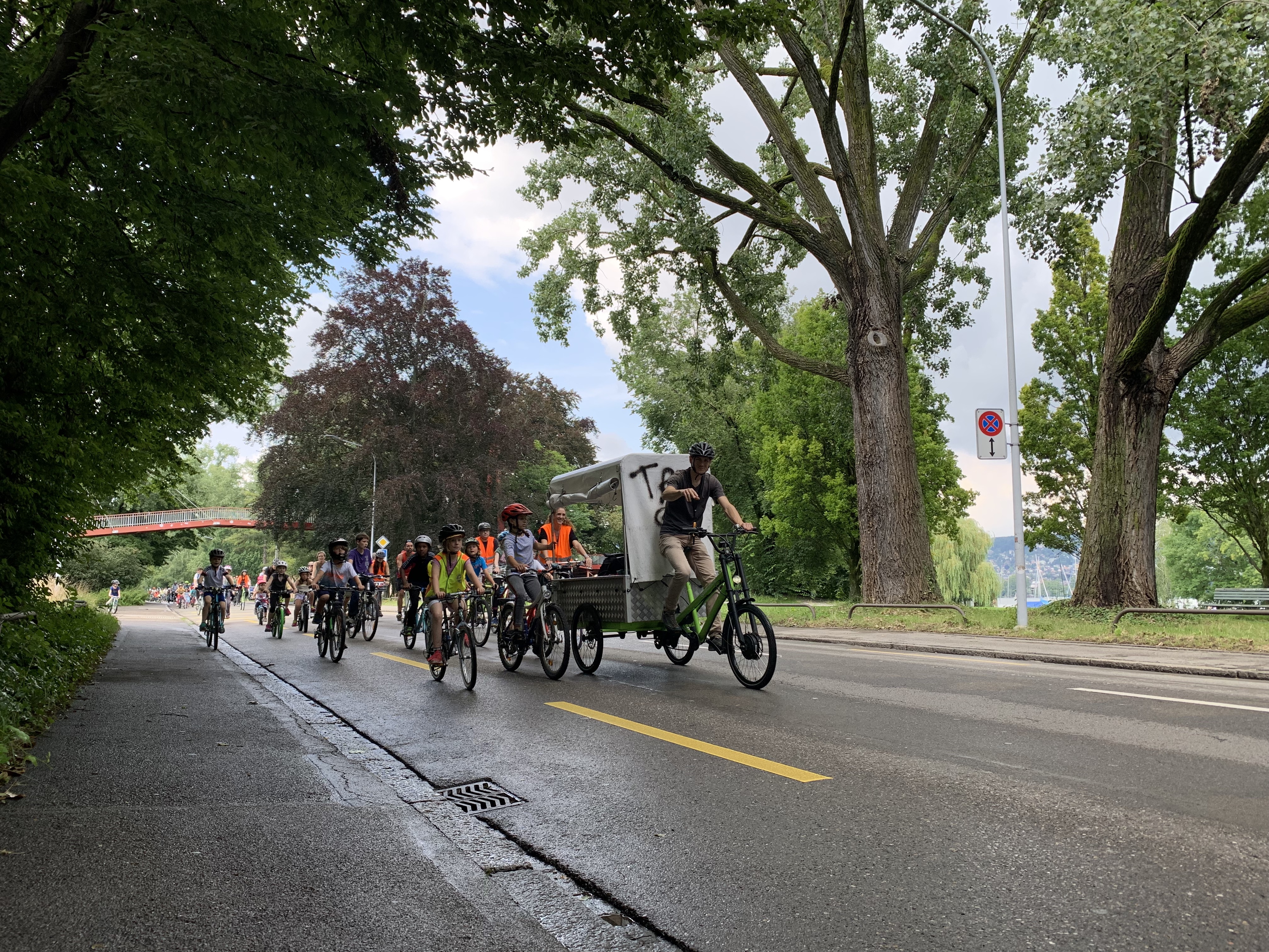 - Am 18. September, am Tag der weltweiten Kidical Mass, fuhren die Kids vom GZ Bachwiesen über die Pfingstweidstrasse zum GZ Schindlergut.